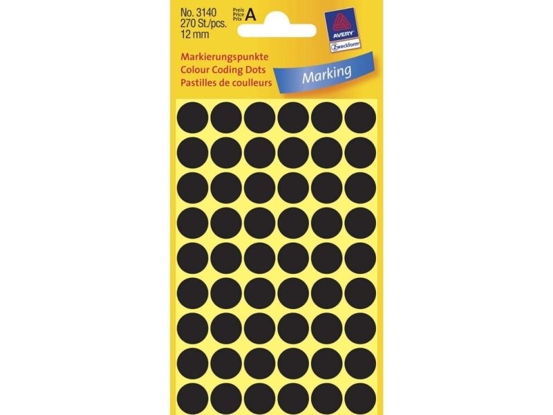 | • Fås i mange forskellige størrelser og farver • Til alle former for farvekodning • Permanent klæbende runde farvemarkeringsdots • Nemme at bruge |