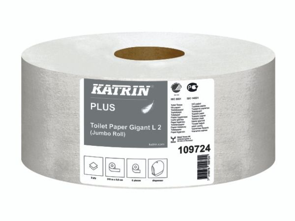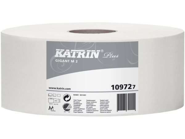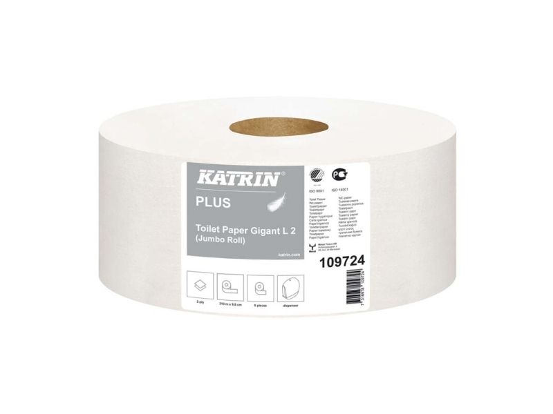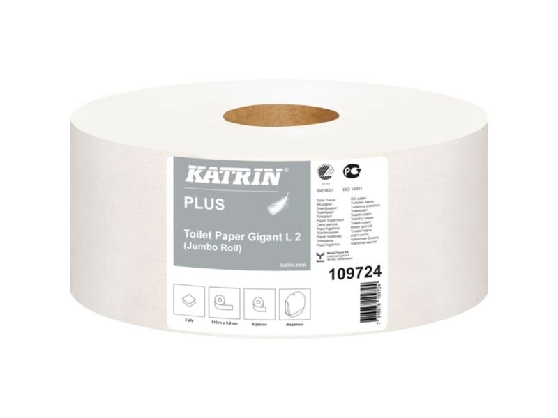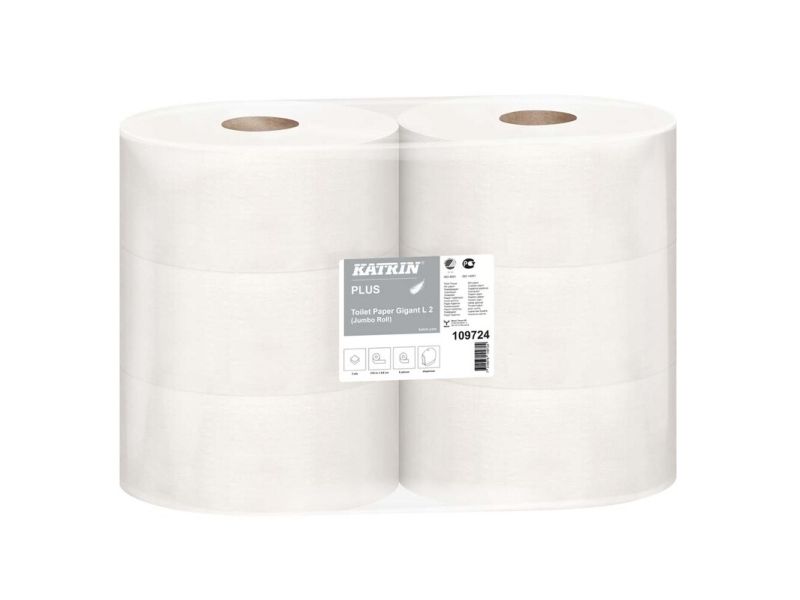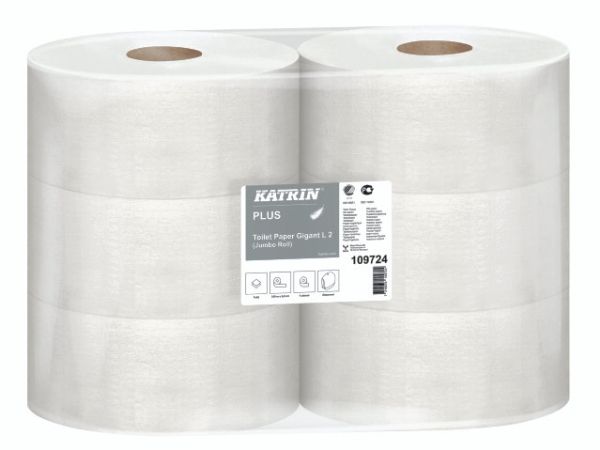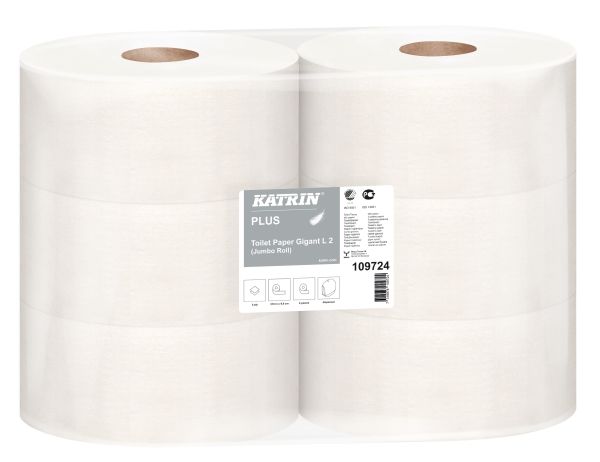 Toiletpapir Katrin Plus 2-lag Ø24 cm 310 m Uperforeret Hvid,6 rl/krt