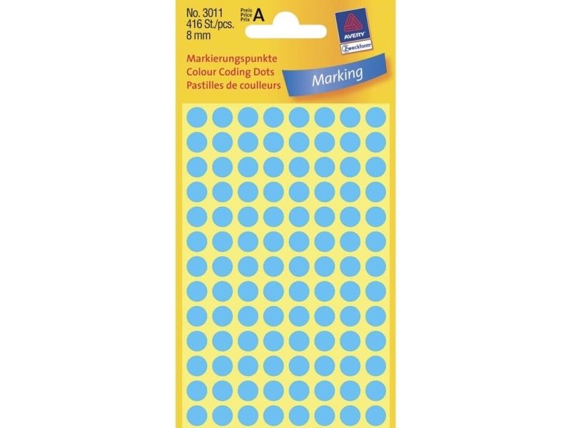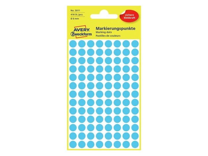 Avery Zweckform - Selvklebende - blå - 8 mm rund 416 etikett(er) (4 ark x 104 runde etiketter)