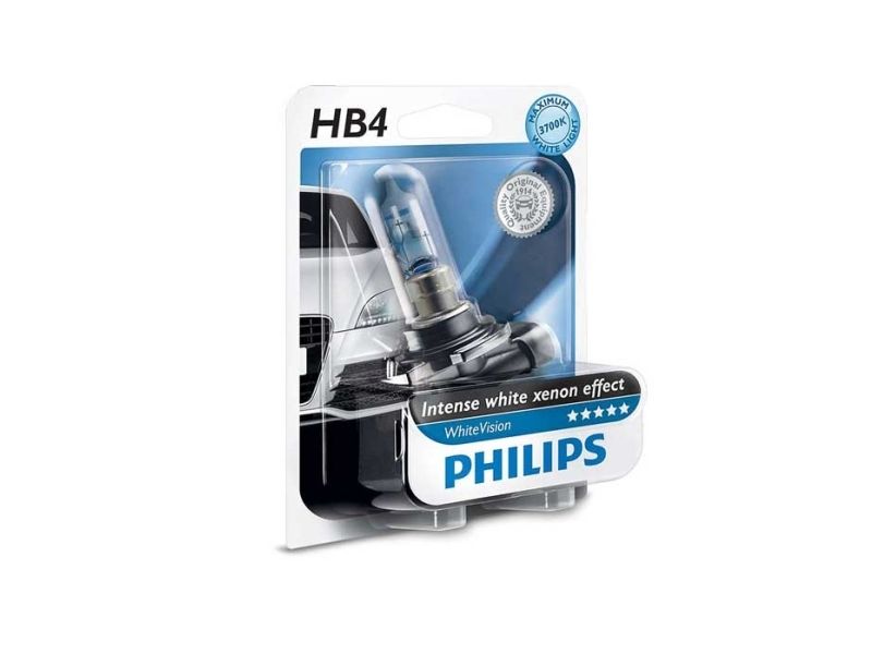 Philips WhiteVision Type lampe: HB4 Pakke med: 1 pære til frontlys, 55 W, 12.8 V, HB4, Halogen, 3700 K, 1 stykker