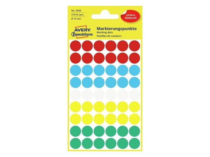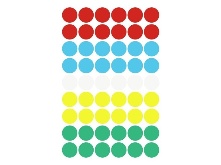 | • Fås i mange forskellige størrelser og farver • Til alle former for farvekodning • Permanent klæbende runde farvemarkeringsdots • Nemme at bruge |