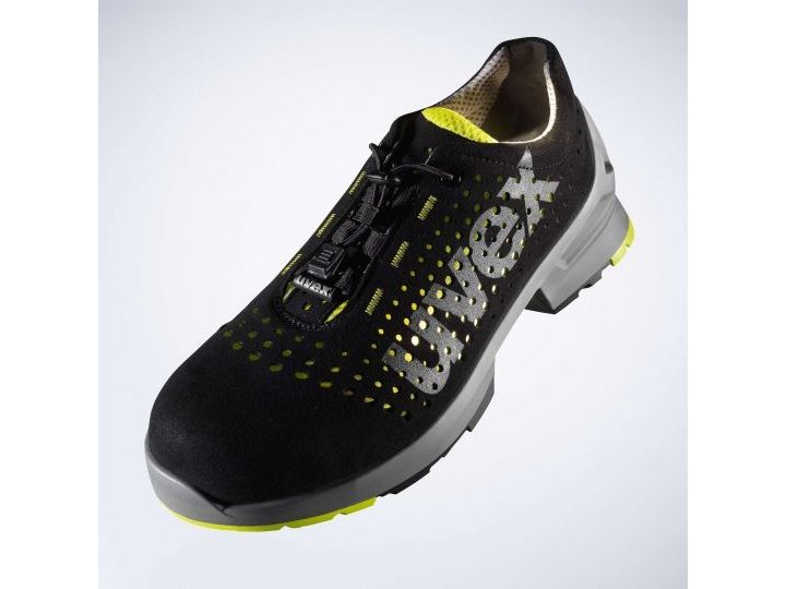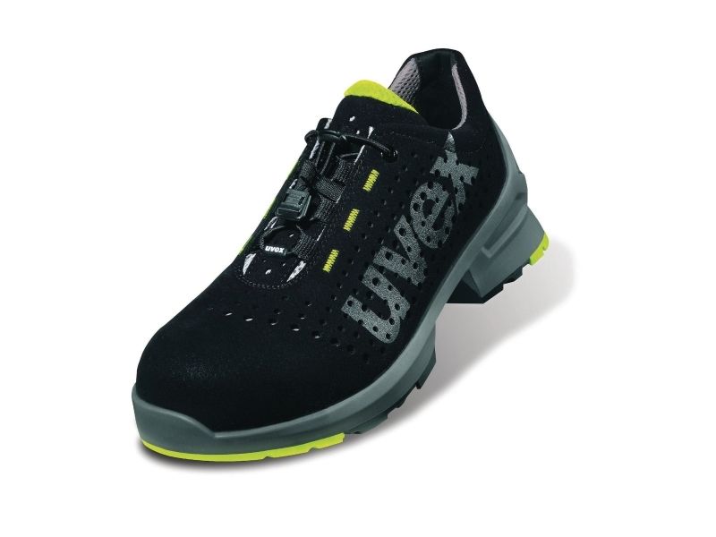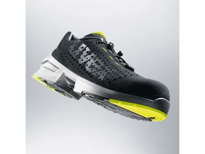 General features - particularly lightweight, versatile perforated S1 safety shoe - made from synthetic materials, so suitable for people allergic to chrome - all sole materials are free of silicones, plasticisers and other paint-wetting impairment substances - elastic laces for quick, individual adjustment, normal laces also provided - suitable for orthopaedic adjustments and insoles from uvex medicare - colour: black, lime - available in sizes: 10, 11, 12, 14 - available in sizes: 35 to 52