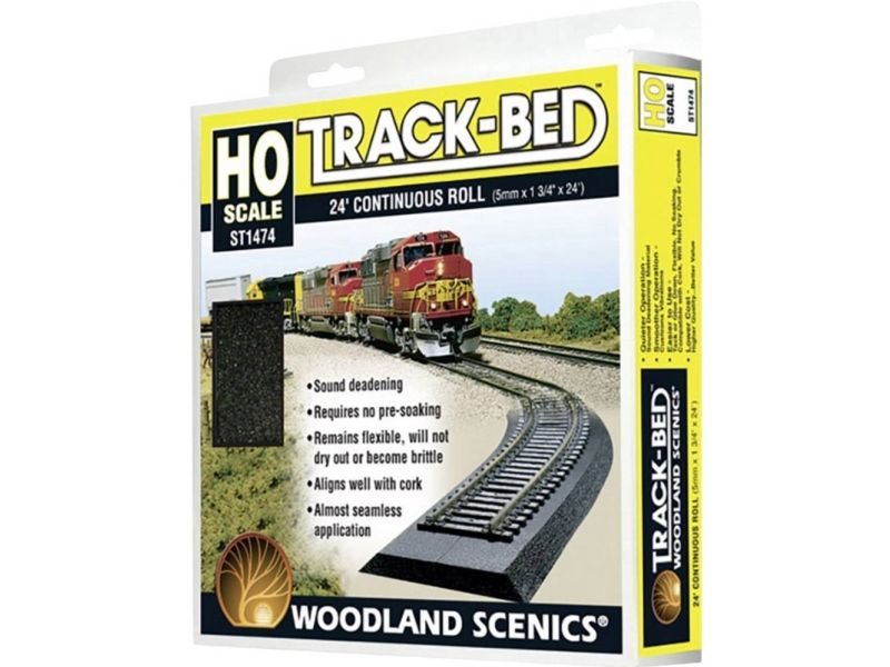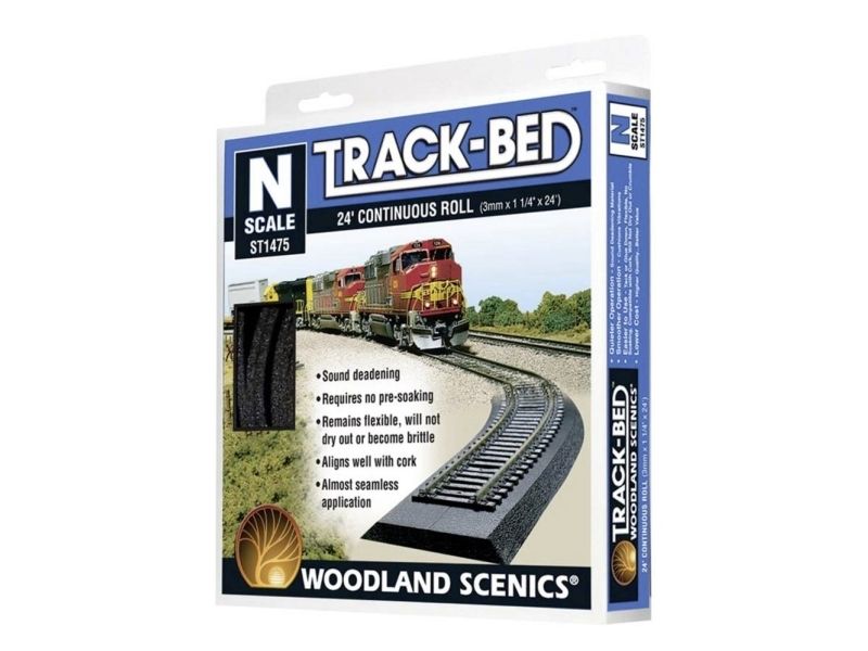 Track Bed (sporleje) fra Woodland Scenics absorberer rullestøjen fra lokomotivet og svingningerne. Det er ekstremt fleksibelt, enkelt at forarbejde og af høj kvalitet.