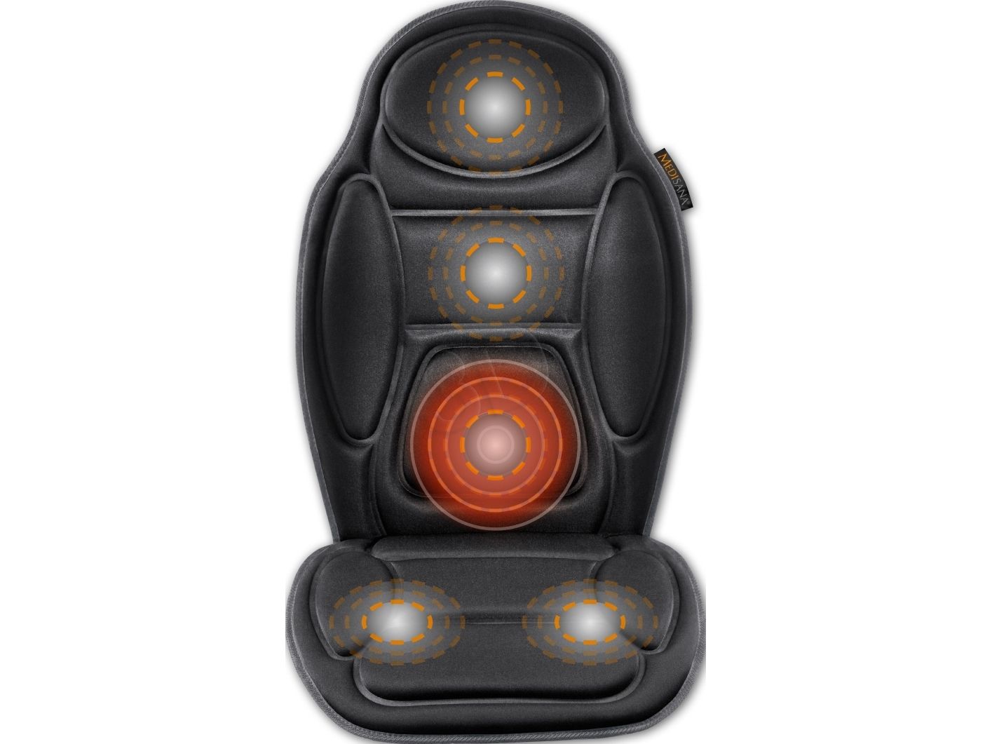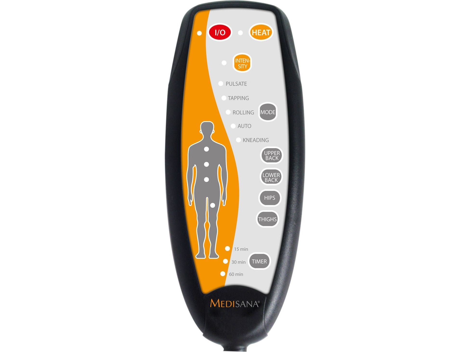 - Four massage zones to choose from, either alone or in. - Timer for programming the running time: 15/30/60 minutes. - Five preset massage programmes. - Program control via practical cable remote control. - Additional heat function can be selected. - Pleasant vibration massage: with three intensity settings also suitable for cars. - Five massage motors in the back and seat areas. - High-definition massage: selective, intensive massage to make you feel good. - Particularly easy to use and store.