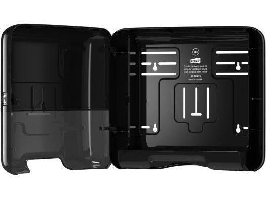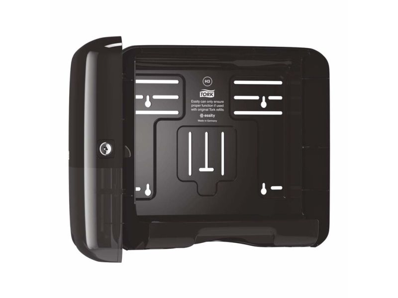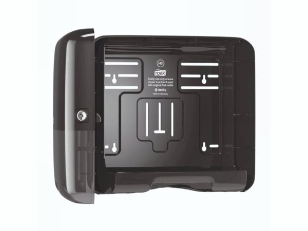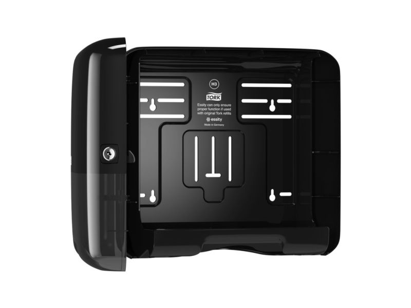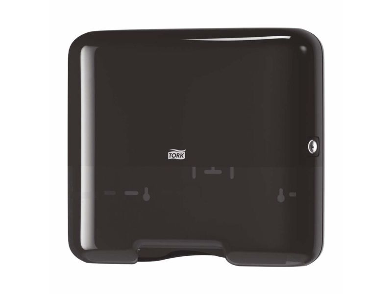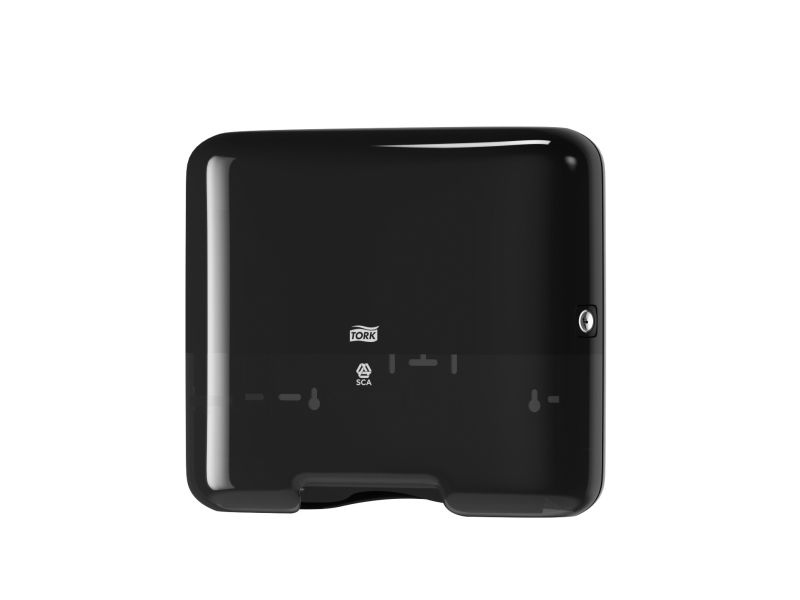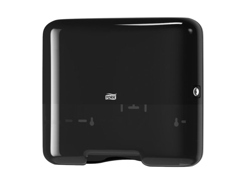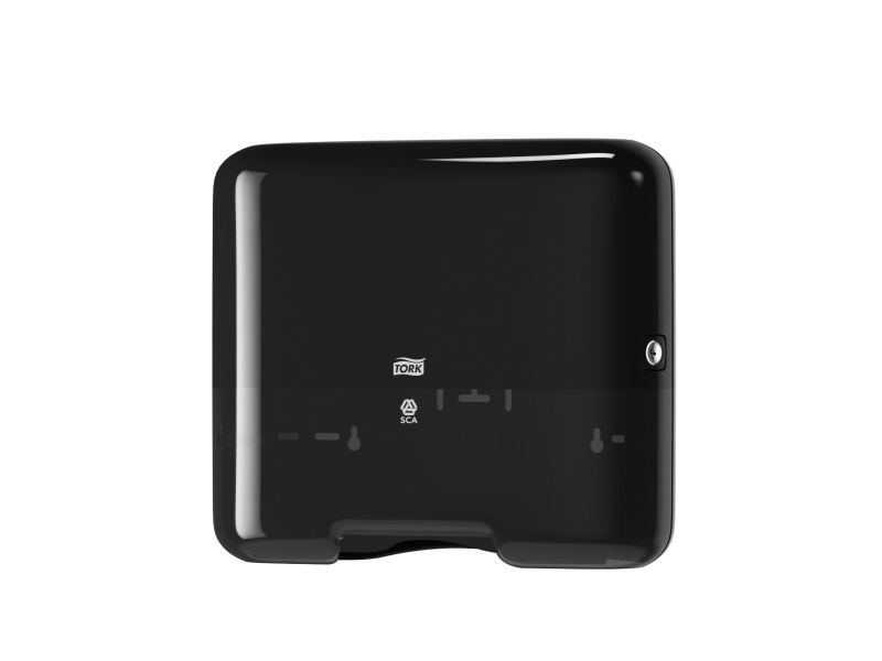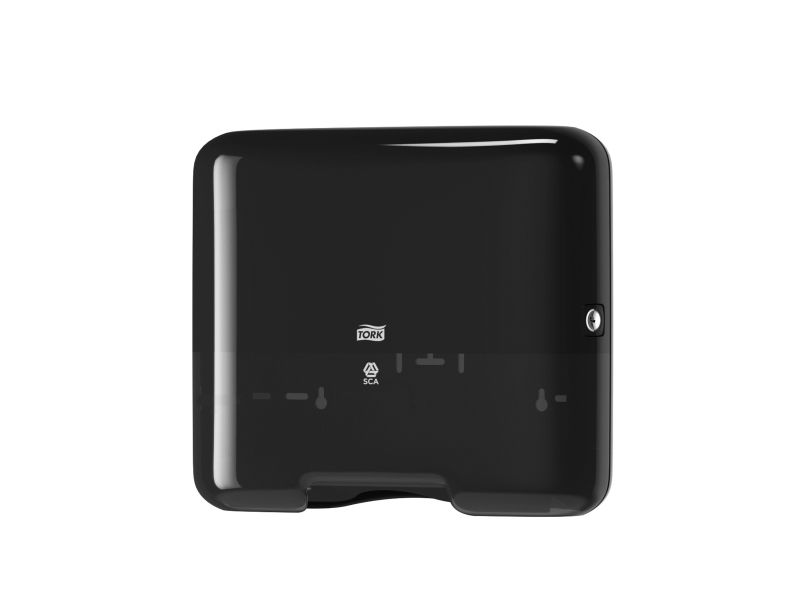 Mini håndklædedispenser til zigzag og lagfalz papirservietter H3, sort 553108 Mini håndklædedispenser fra Tork H3 system til zigzag- og lagfalz-papirservietter i funktionelt og moderne Elevation-design Enkeltservietudtrækningen forhindrer spild og er desuden særligt hygiejnisk Den økonomiske fjernelse af enkelte papirservietter er bæredygtig og desuden særdeles effektiv ideal til toiletter med lidt til medium trafik Den kompakte papirserviet-dispenser til Tork zigzag- og lagfoldet-papirservietter. ideal til mindre til middelmådige toiletter og hygiejnisk og økonomisk i kraft af enkeltservietudtrækning.