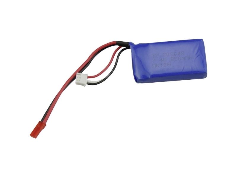 Spænding: 7.4V · Kapacitet: 840 mAh.