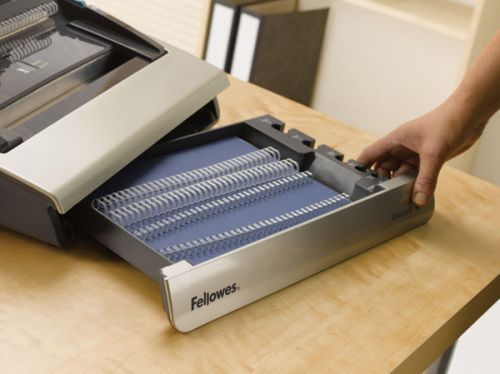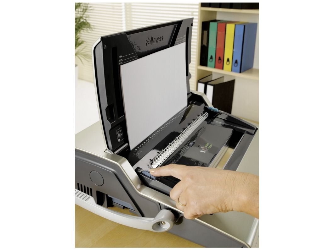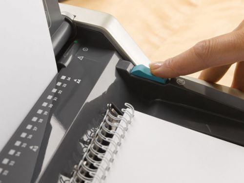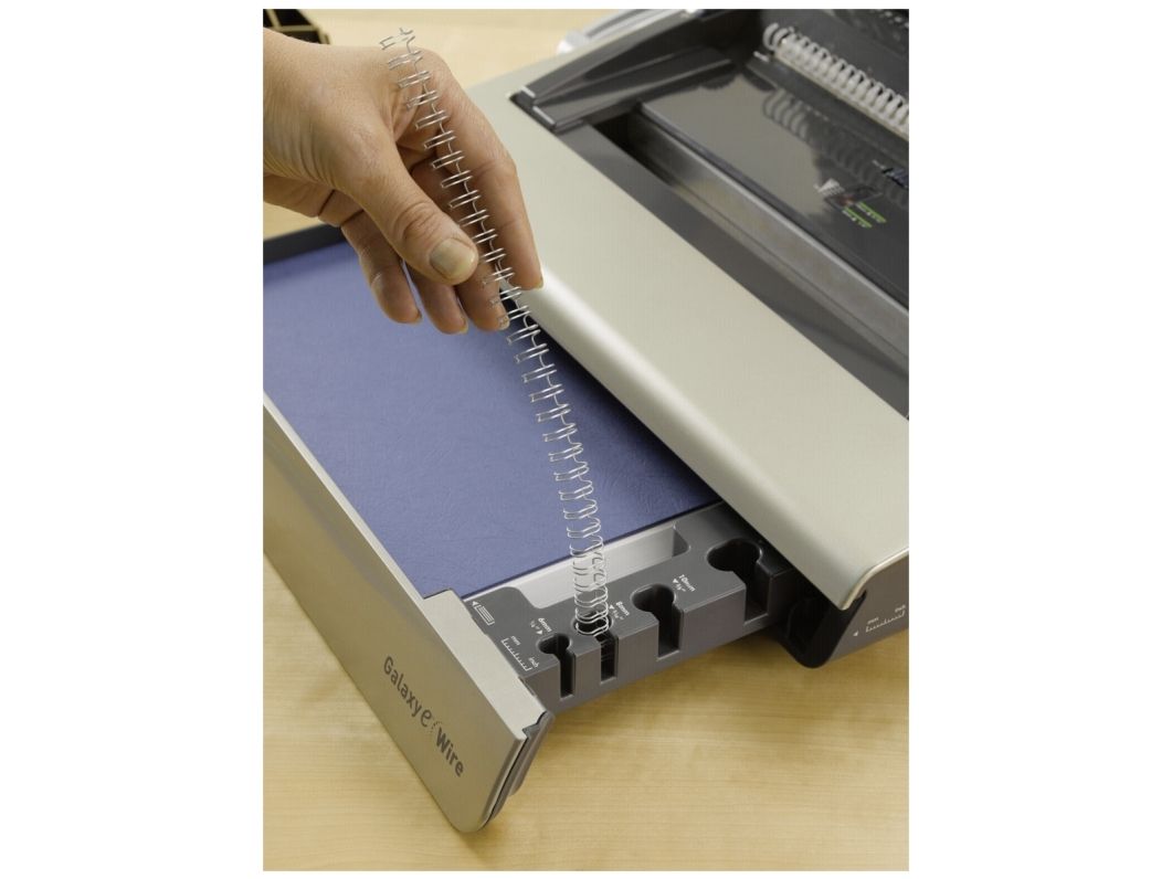 - Stylish, durable wire binder gives a high quality, professional finish - Electric punch for effortless punching of up to 20 sheets - 20 sheet punch capacity, 130 sheet binding capacity with a maximum wire size of 14mm - Punch selection for A4 & A5 sized documents - Preselectable closure control for easy wire closure - Front access full size storage tray with patented wire & document measure for quick selection of the correct size supplies - Includes starter kit for binding 20 documents