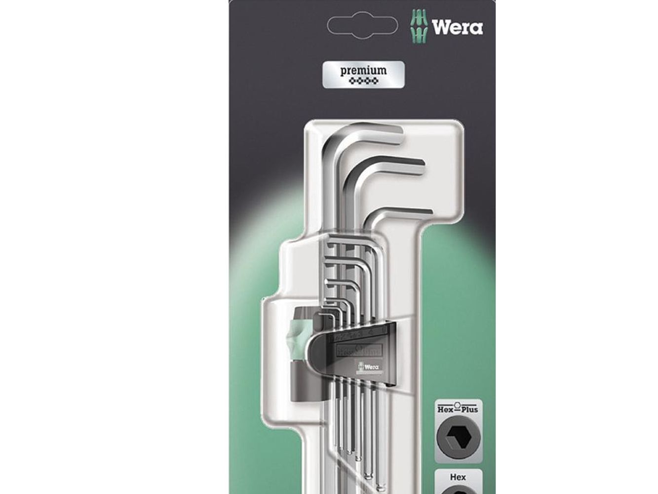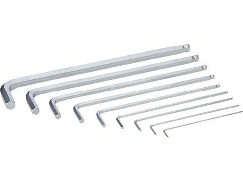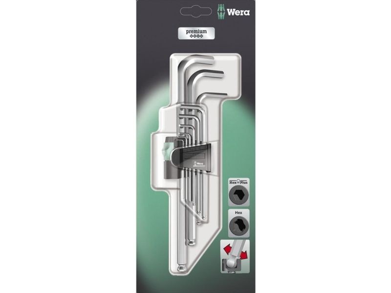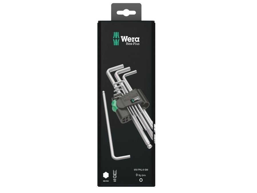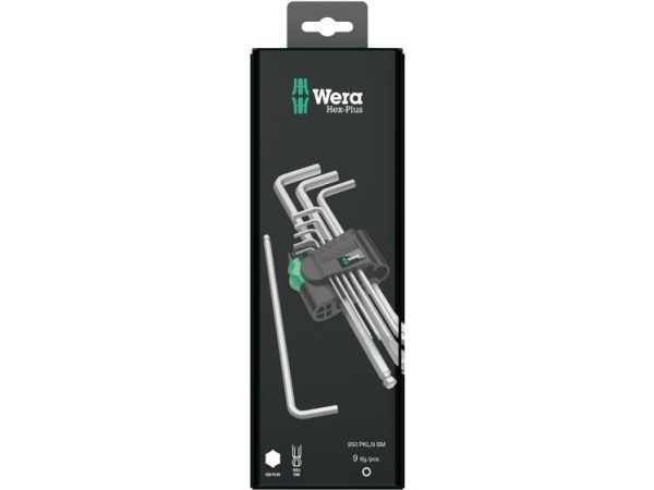 High quality L-key set for hexagonal socket screws in a practical clip fastener out of wear-resistant material, enabling secure storage of the L-keys as well as simple removal. L-keys with Hex-Plus profile: offers a larger contact surface within the screw head. This reduces the notching effects to a minimum and almost completely eliminates the risk of destroying the screw recess. The ball-end on the long arm allows for reliable working even in difficult installation situations. The precise chrome-plated design ensures high corrosion protection. The tools are quickly to hand thanks to the laser-engraved and thereby wear-resistant size markings on the L-keys.