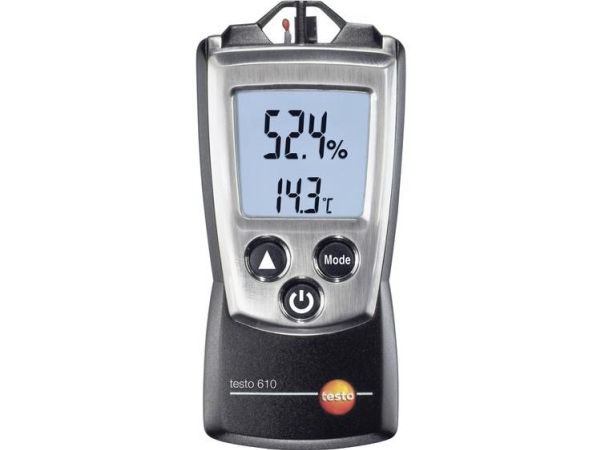 Reliable technology, ease of use: testo 610 thermohygrometer With its built-in NTC temperature sensor, the testo 610 thermohygrometer offers great accuracy when it comes to temperature measurement. The thermohygrometer measures humidity using its capacitive humidity sensor which is characterized by its long-term stability. The two sensors make the testo 610 a reliable and durable thermohygrometer.