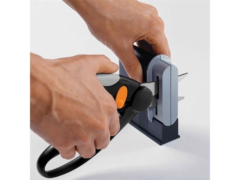 Nemt anvendelig saksesliber til højrehåndede brugere. Sikrer optimal skarphed og længere holdbarhed på dine sakse. Nem at rengøre. Tåler opvaskemaskine.