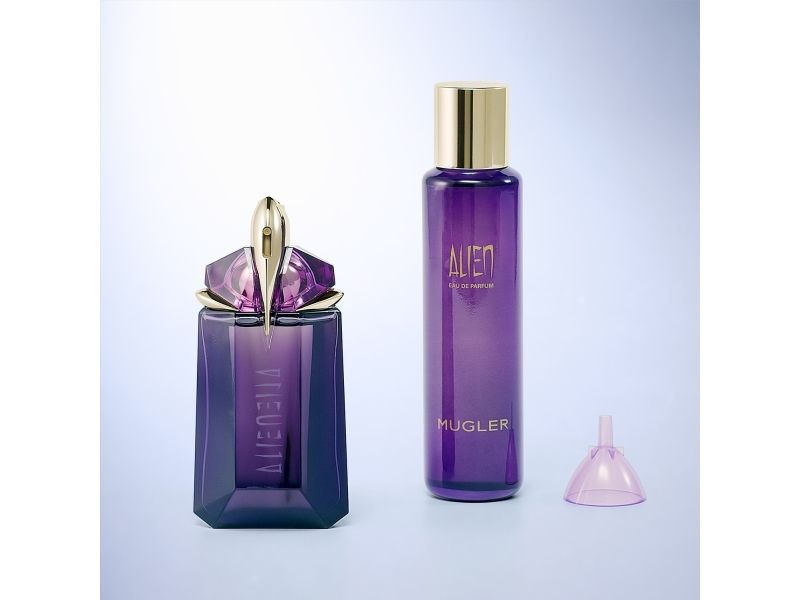 Refill your bottle anywhere: in stores with the MUGLER Fountain or at home with the unique Refill Bottles.