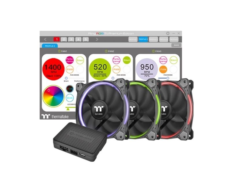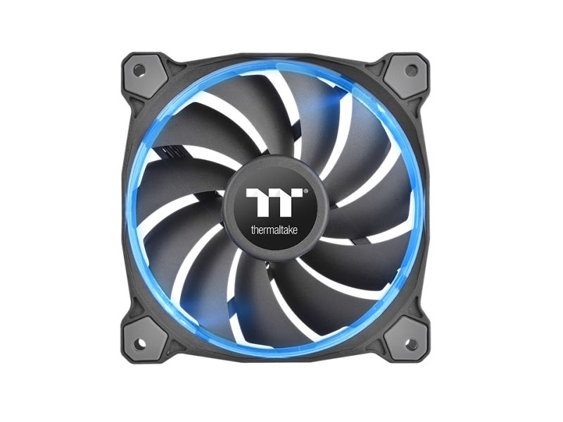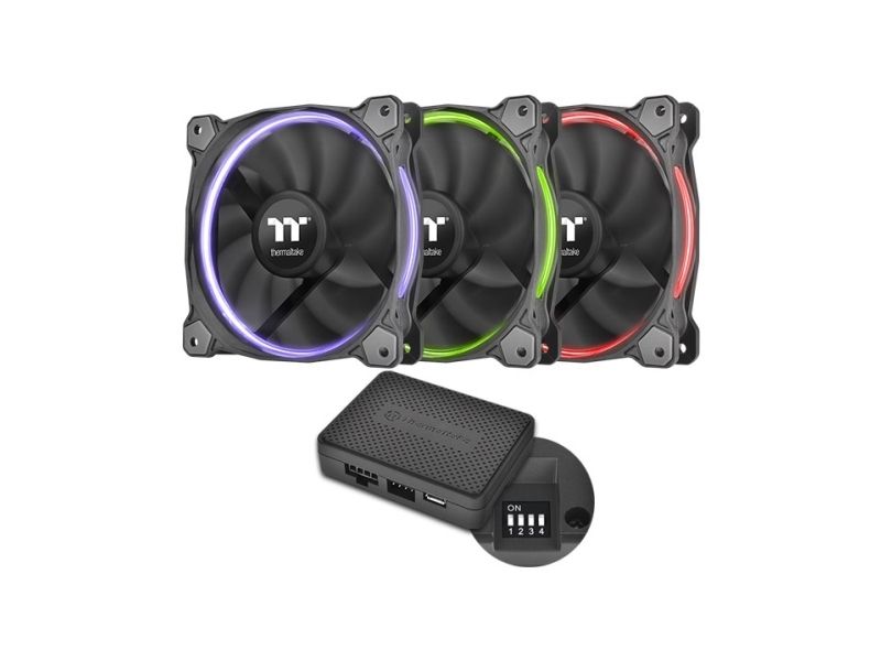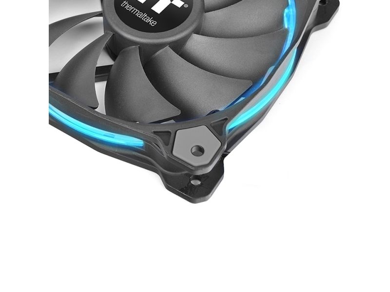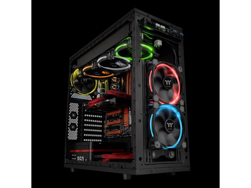 The Riing RGB Series fan introduced by Thermaltake is a patented circular 256 multi-colored 140mm radiator fan. Users can freely adjust fan speed as well as fan colors by clicking “MODE”, “PLAY/PAUSE”, and “SPEED” button on the fan controller. The fan blades are optimized to enhance static pressure for an impressive cooling performance. Hydraulic bearings for silent operation guarantee ultra-low noise, and the anti-vibration mounting system strengthens the product’s stability during operation. The color and brightness uniformity of the multicolored LED ring is visible from all directions and adds style to the chassis.
