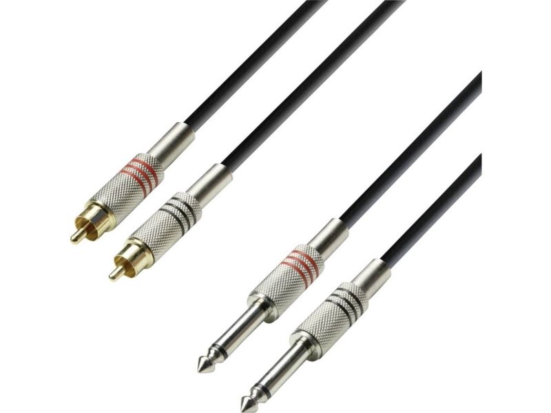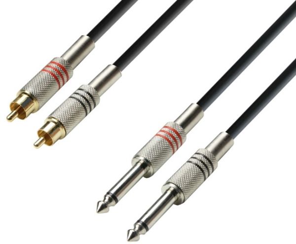 adam hall 3 Star, 2 x RCA, Hankjønn, 2 x 6.35mm, Hankjønn, 3 m, Sort, Gull, Rød, Sølv