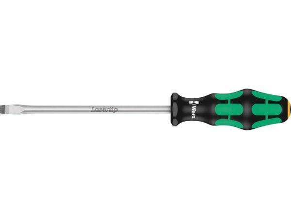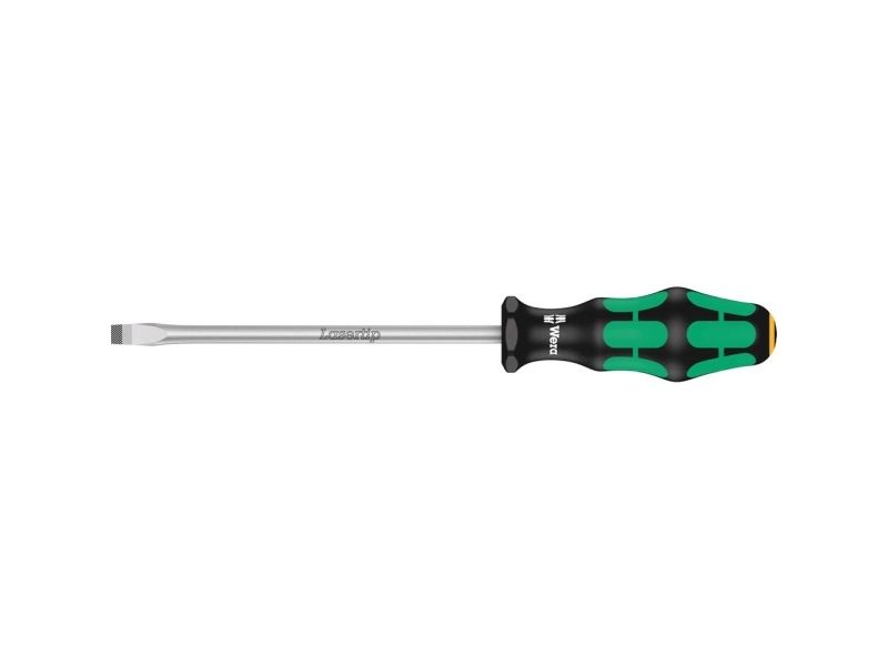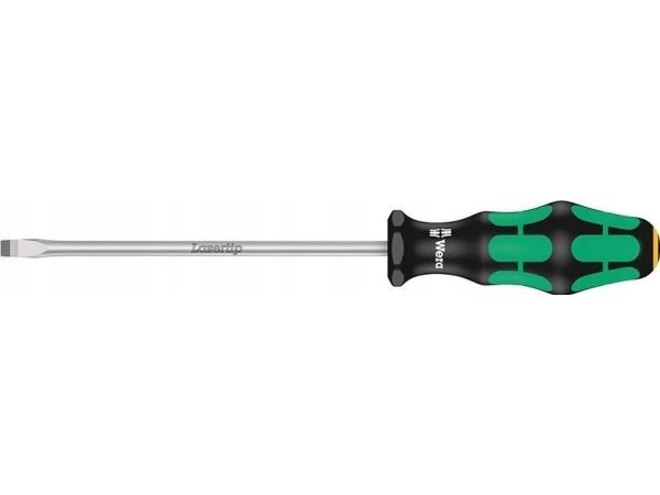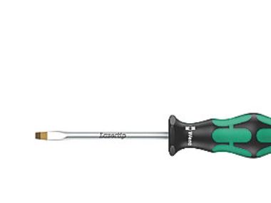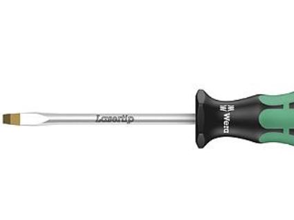High quality Kraftform Plus screwdrivers. Multi-component Kraftform Plus handle for pleasant, ergonomic working that makes blisters and calluses a thing of the past. Hard gripping zones for high working speeds whereas soft zones ensure high torque transfer. The tips of the Wera Lasertip screwdrivers are microscopically roughened by laser beams. This rough surface literally bites into the head of the screw. Any unintentional slipping out is therefore prevented. "Take it easy" tool finder with colour coding according to profiles and size stamp – for simple and rapid accessing of the required tool. The hexagonal anti-roll feature prevents any bothersome rolling away at the workplace.