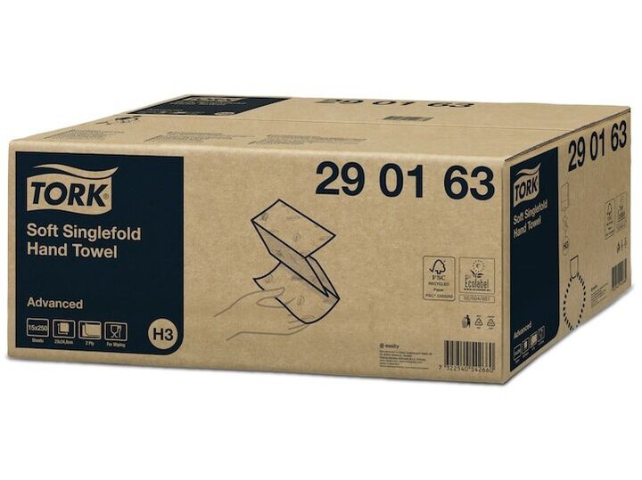 Brug Tork Singlefold Advanced Håndklædeark til at klare behovene for håndaftørring. Disse håndklædeark passer i Tork Dispenser Singlefold Håndklædeark, som er velegnet til krævende miljøer og har pålidelig ét-ad-gangen dispenserfunktion, der kontrollerer forbruget og fremmer god håndhygiejne.