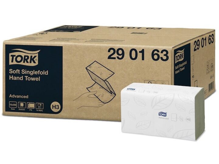 Håndklædeark Tork H3 Advanced Singlefold 2-lag hvid - (15 pakker x 250 stk.)