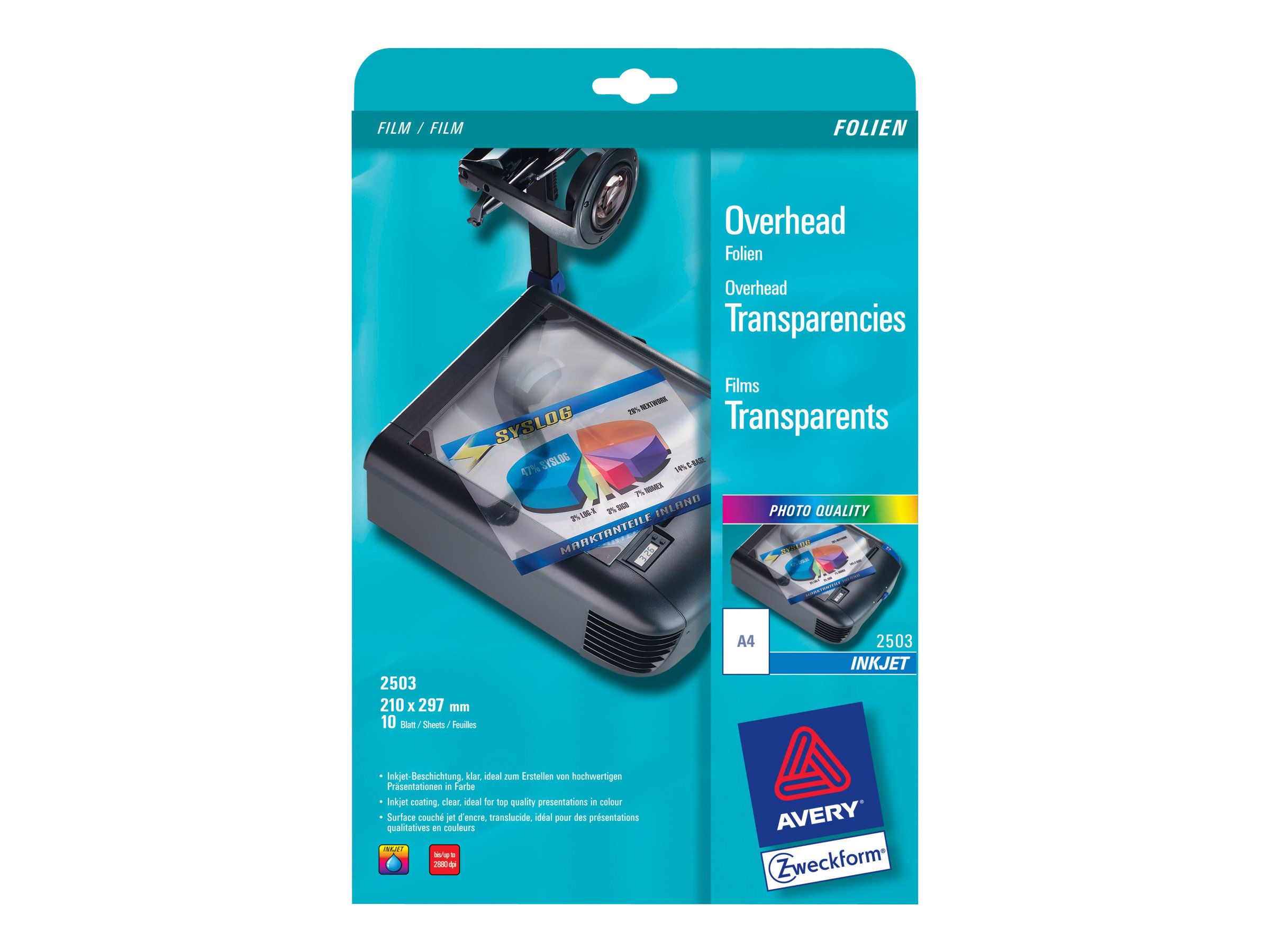 Avery - Folie - hvit - A4 (210 x 297 mm) 10 stk papir