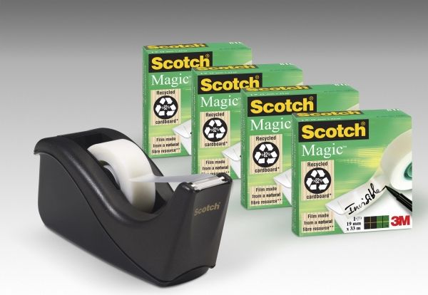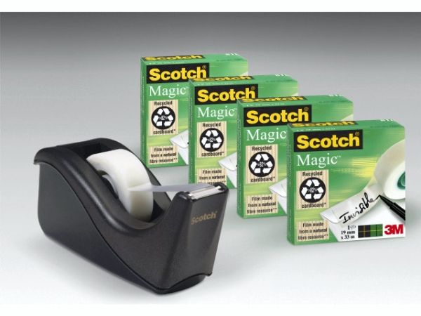 Tape Scotch® Magic™ 19 mm x 33m 4 ruller + 1 sort C60 dispenser