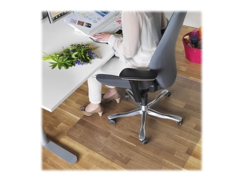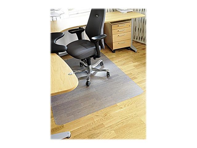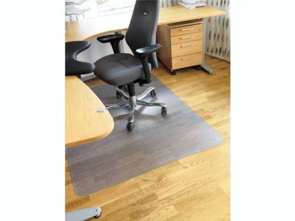 A floor protector protects the floor and carpets from wear and dirtying. This floor protectors is made without PVC. The most common use at workstations is to protect the floor from the castors on an office chair, but frequently the floor is subject to wear or wetness in many other places. A floor protector of the right size is also suitable in a hall, under flower pots, by a coffee or water dispenser, printer or anywhere where the floor needs protection. A floor protector without spikes is suitable for hard floors and mats and really short-pile carpets.