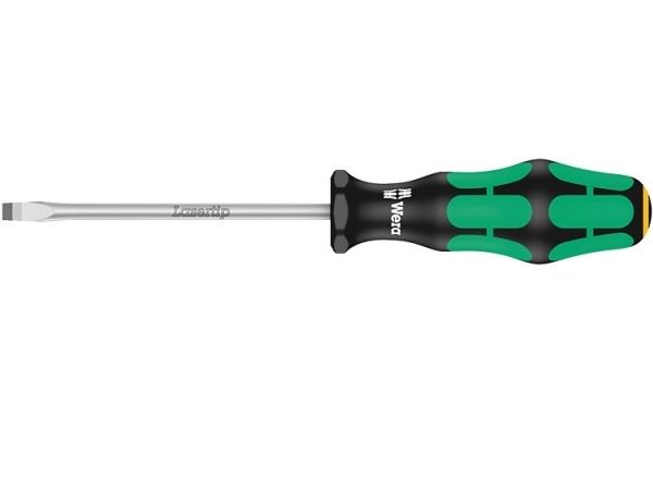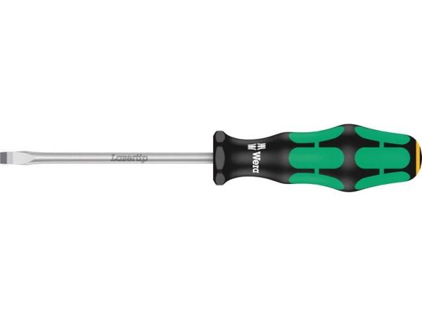 High quality Kraftform Plus screwdrivers. Multi-component Kraftform Plus handle for pleasant, ergonomic working that makes blisters and calluses a thing of the past. Hard gripping zones for high working speeds whereas soft zones ensure high torque transfer. The tips of the Wera Lasertip screwdrivers are microscopically roughened by laser beams. This rough surface literally bites into the head of the screw. Any unintentional slipping out is therefore prevented. "Take it easy" tool finder with colour coding according to profiles and size stamp – for simple and rapid accessing of the required tool. The hexagonal anti-roll feature prevents any bothersome rolling away at the workplace.