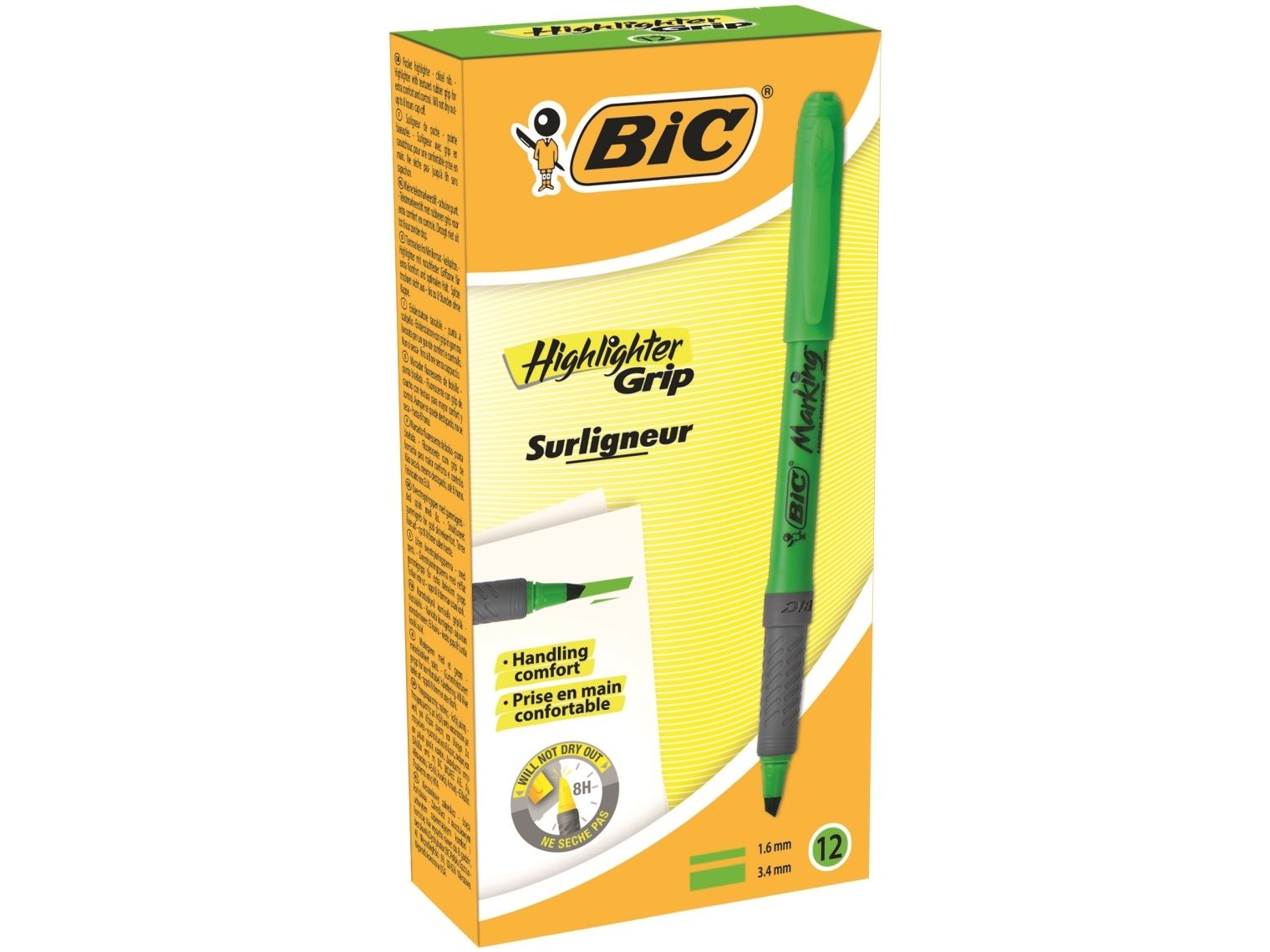 Overstregningspen BIC Highlighter Grip grøn med skrå spids - (12 stk.)