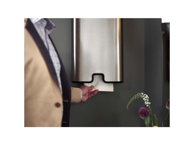 Et moderne design med glatte overflader og rene linjer, der passer ind i dit toilet. Bidrager til en behagelig gæsteoplevelse og signalerer høj kvalitet i dit etablissement. Elegant rustfrit stål med anti-fingeraftryk coating sikrer, at affaldsbeholderen altid fremtræder ren og pæn.