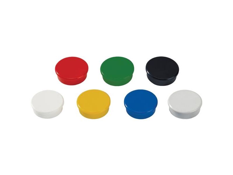STATEN OG KOMMUNERNES INDKØBSSERVICE A/S Magneter, Dahle kraftig Praktiske magneter til ophængning på whiteboardtavler eller andre magnetiske overflader. Disse magnet er lavet i plast og er i assorterede farver. Formen er rund og diameteren 38 mm. Bæreevne på 25 ark. Bestil i dag, så du altid har det du skal bruge lige ved hånden. Best.enhed: pakke a 10 stk.