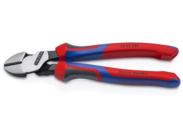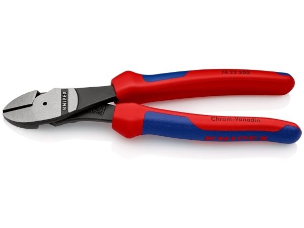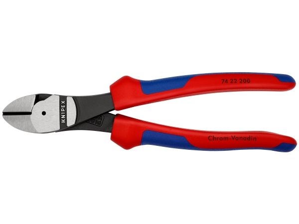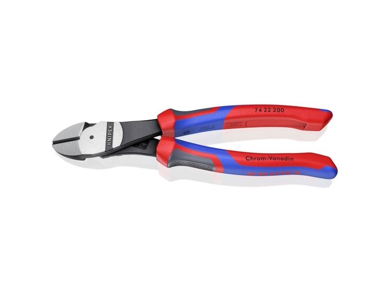 Knipex 74 22 200, Diagonal tang, Støtbestandig, Dielektrisk, Kromvanadiumstål, Plast, Blå, Rød, 200 mm