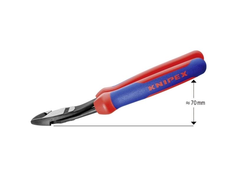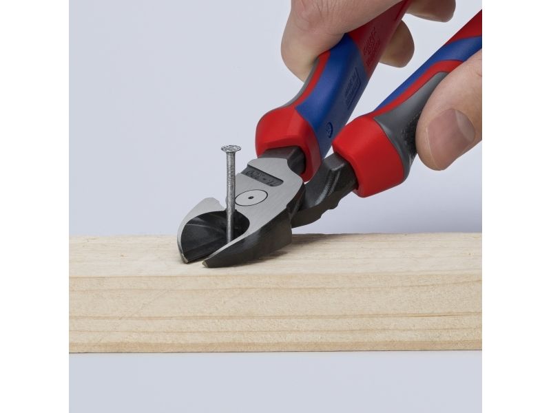 Til hårdeste, vedvarende belastning. Høj skæreydelse ved lavt kraftforbrug pga. optimal tilpasning af skærevinkel og udvekslingsforhold. Præcisionsskær yderligere induktionshærdet (skærets hårdhed ca. 64 HRC), til alle typer tråd, inklusive pianotråd. Med komfort-håndtag: fremstillet af tre ergonomiske komponenter til optimeret håndtering og med to KNIPEXtend-grænseflader til forlængelser. 12° bøjet hoved til plan afskæring, med fri plads til at gribe fat.
