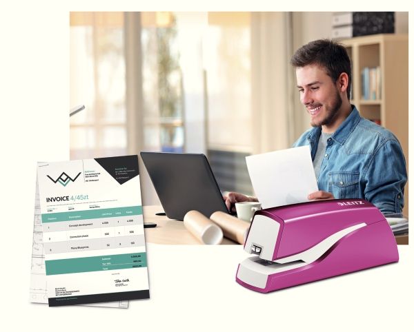 Leitz WOW NeXXt - Elektrisk stiftemaskin - 10 ark / 1 mm - No.10 - metallisk rosa