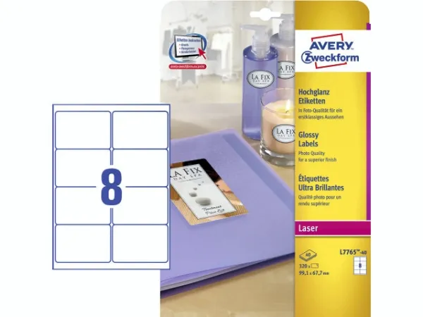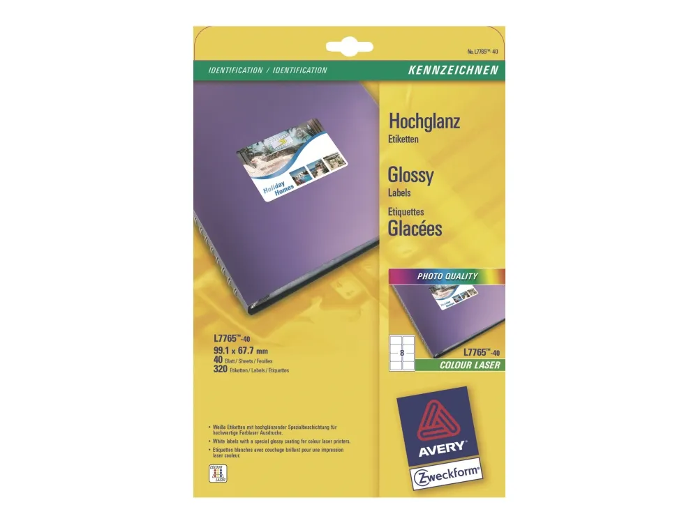 Avery - Shiny - blank - 67,7 x 99,1 mm 40 stk (5 ark x 8) fotoklistremerker