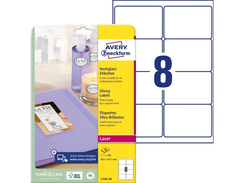 Got sales information that needs marking with special offers or company information? Perhaps you need to highlight the end of an offer. Maybe you have a supplier brochure that you want to add your own sales information to as it's you who will be making the final sale. Whatever the need, you'll want the labels to look as stylish as the brochures. Glossy labels are made from a photo quality material so text and graphics will really stand out. These labels for color laser printers have 8 labels per sheet, but you can also get larger glossy labels if you need them.