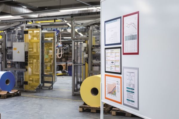 The product is twin colored self-adhesive frame for all types of safety and warning information with folding magnetic front closure. Safety signs and instructions can be exchanged quickly and easily and read from both sides when adhered to glass. A4 size, and can be used in either portrait or landscape format. It can be attached to most smooth surfaces such as glass. The frame is identical on both the front and back.