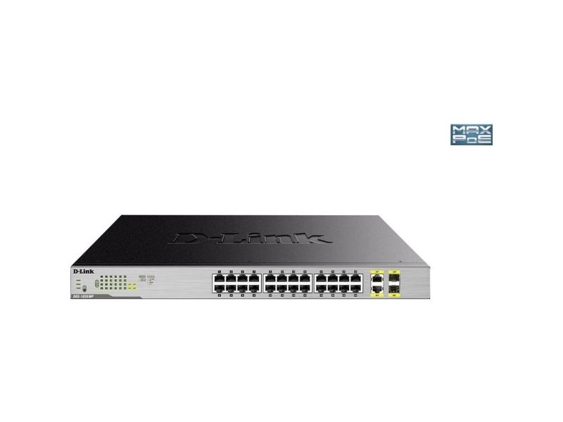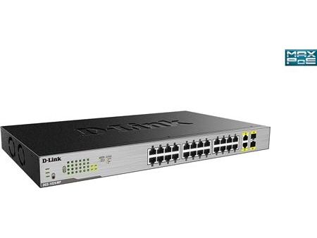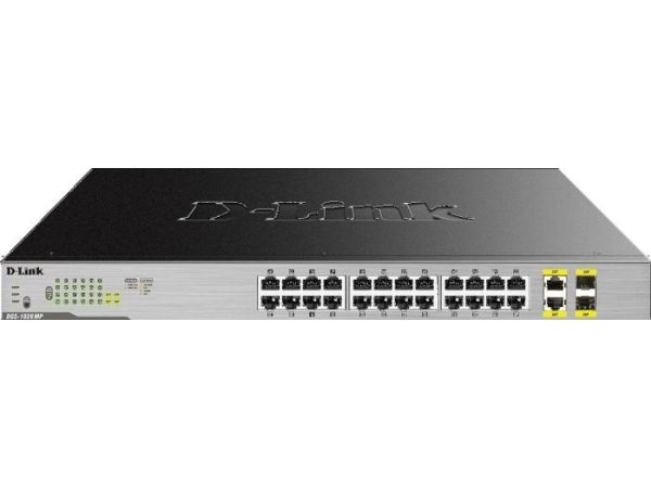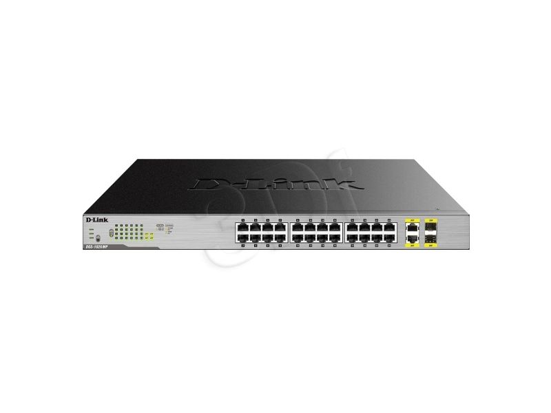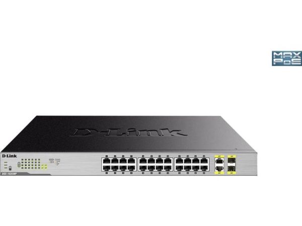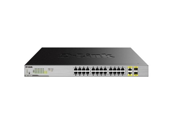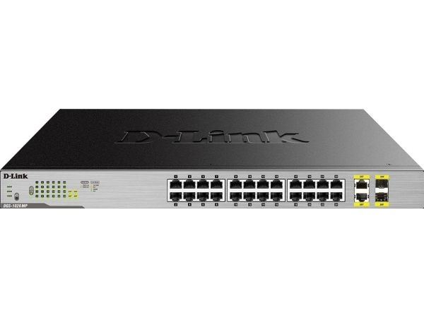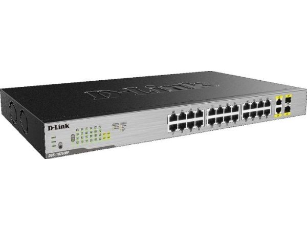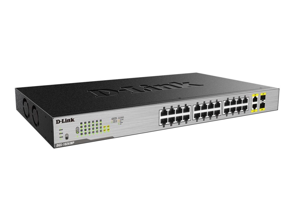 The D-Link DGS-1026MP 26-Port Gigabit Max PoE Switch enables users to easily connect and power PoE-capable devices such as wireless access points (APs), IP cameras, and IP phones. Each of the 24 PoE ports can supply up to 30 W, with a total PoE budget of 370 W.