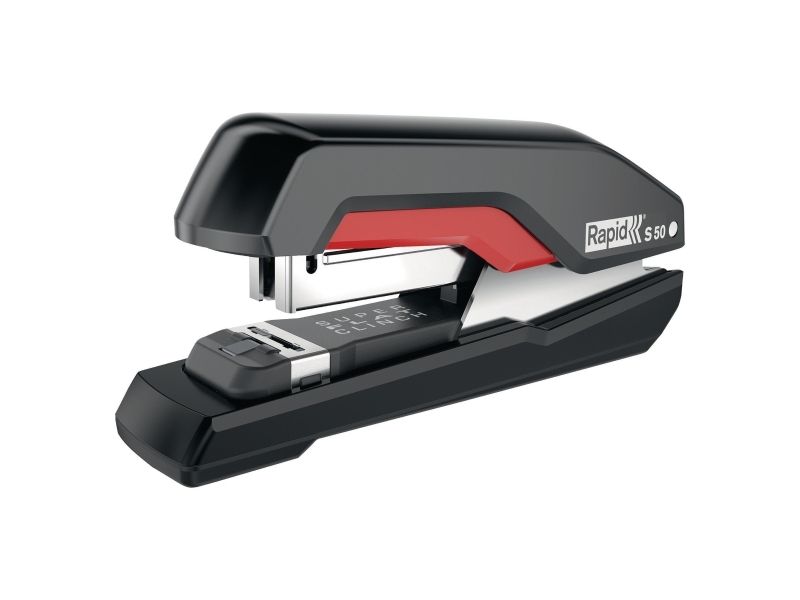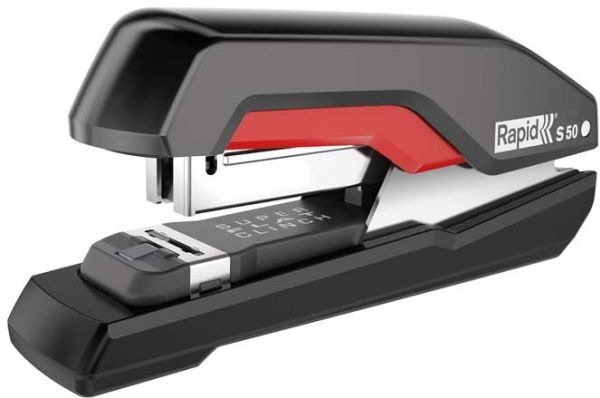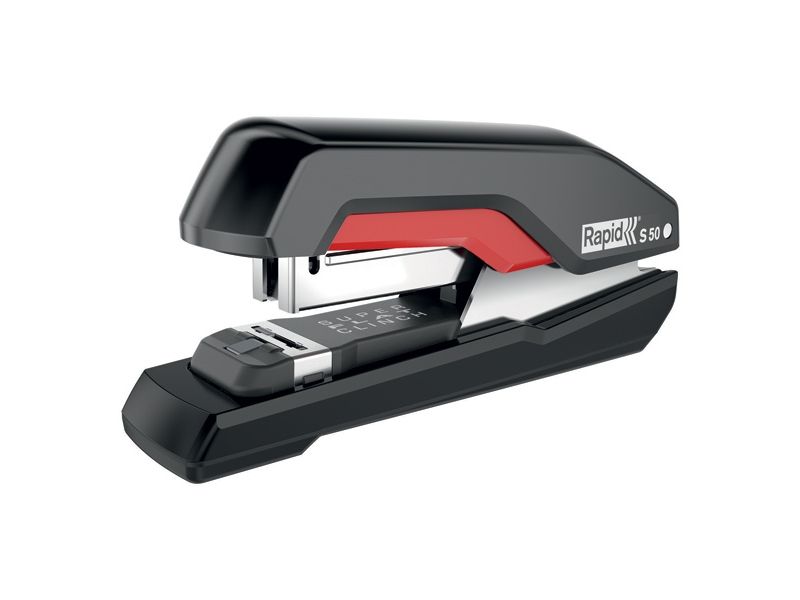 Rapid S50 fulfils all demands for the modern office! This neat half strip stapler staples 2 to 50 sheets without a problem using the same staples. The Patented SuperFlatClinch technology together with the innovative by-pass feature allows you to get superflat results, 40% reduced paper stacks.