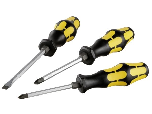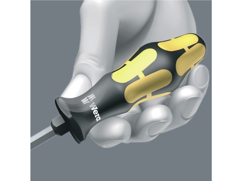 - A hexagon blade made out of high-quality bit material extends right through the handle – thereby ensuring full transfer of force, even when struck with a hammer. The ductile tempered material prevents the blade from splintering or breaking.