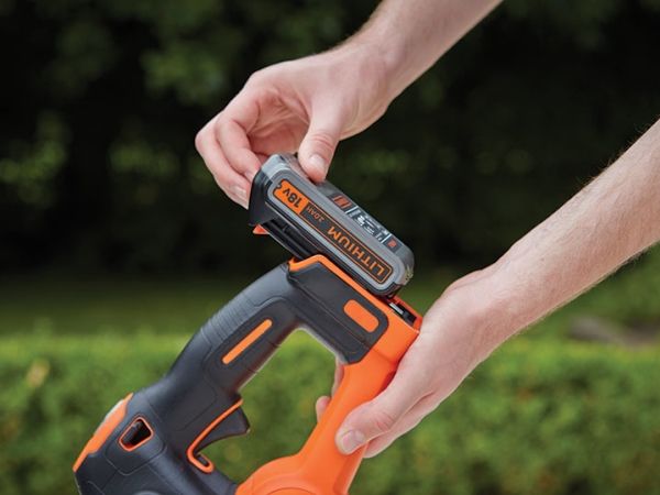 Den oppladbare 18V lithium-ion Hekksaksen med Powercommand gir deg den ultimate kontroll for å holde hagen ryddig. Med Powercommand funksjonen kan du aktivere tregere, kraftigere kutt ved et tastetrykk. Da skjærer den gjennom tykke, tøffe grener og hindrer at bladet kjører seg fast uten å skade verktøy eller hekken. Med Litium-ion-batteri som gir deg frihet til å bevege deg rundt i hagen din uten å måtte bruke ledninger og skjøteledninger. En del av Black & Decker 18V lithium-ion-systemet. Et batterisystem, uendelige muligheter.