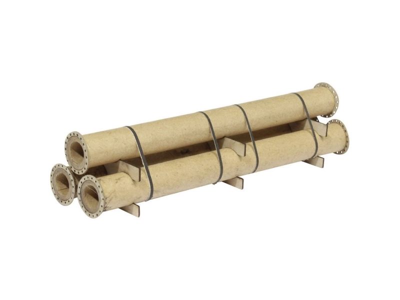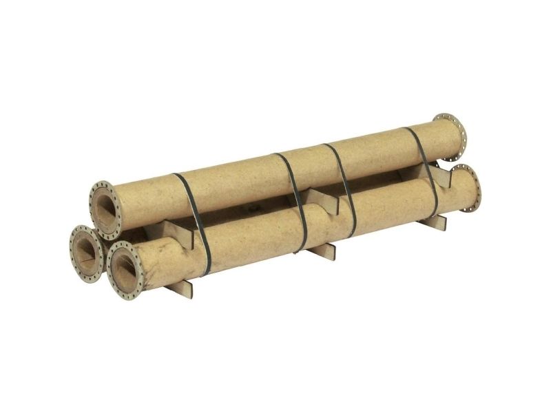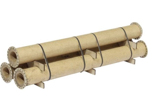 3 stålrør med flange. Laserskåret pap og træ. Modellen kan males individuelt. MBZ-byggesæt.