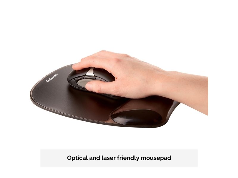 Ergonomic pad conforms to the wrist for all-day comfort. It provides soothing support while redistributing pressure points. Mouse pad provides superior tracking control. Stain resistant; wipes clean with a damp cloth. Non-skid rubber backing keeps pad in place. Stylish, transparent gel adds color to your workspace.