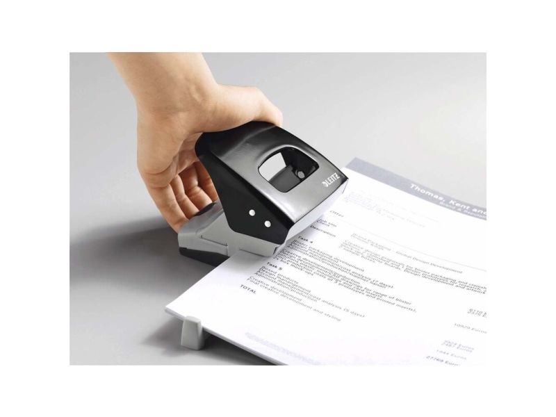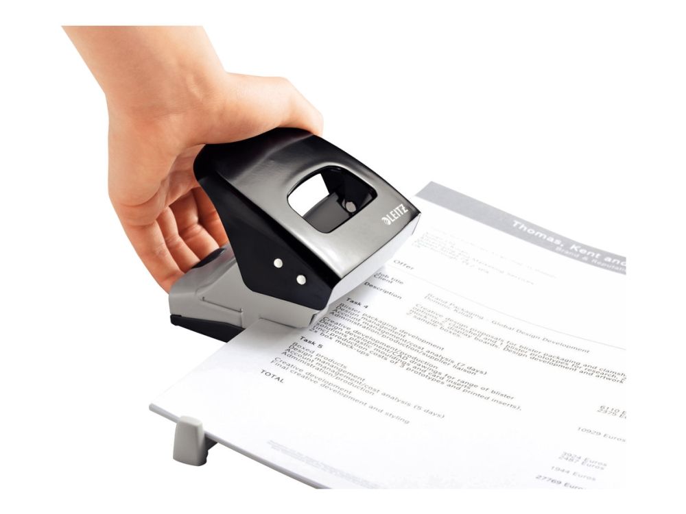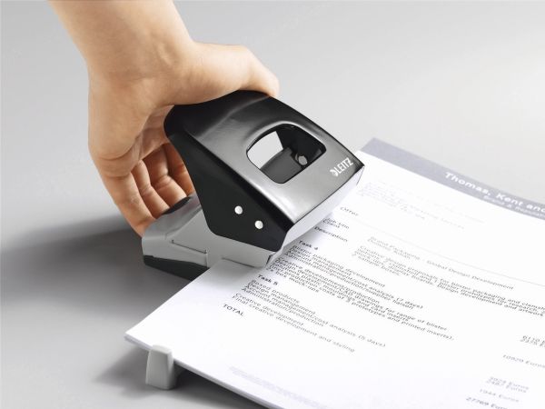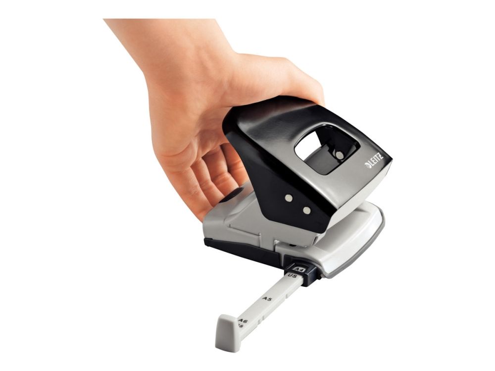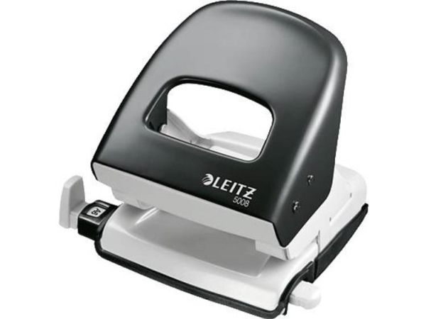 Hulapparat Leitz 5008 sort 2-huls med skinne - til 30 ark