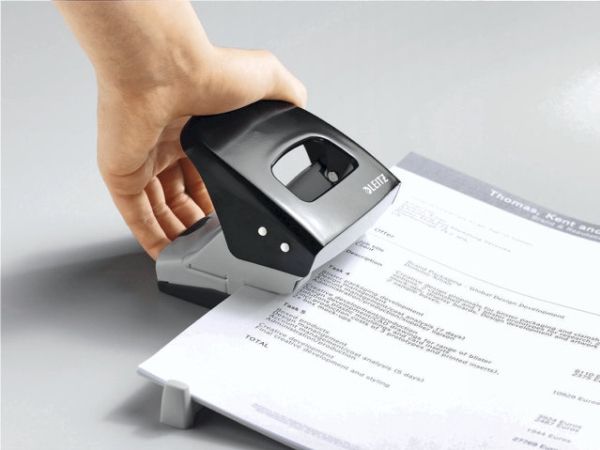 Robust hullemaskin i metall for daglig bruk. Gripehull og spesialslipte hullpiper gjør at du trenger mindre kraft til hulling. Presis papirguide sikrer korrekt plassering av hullene. Sterk og pålitelig.