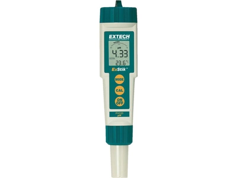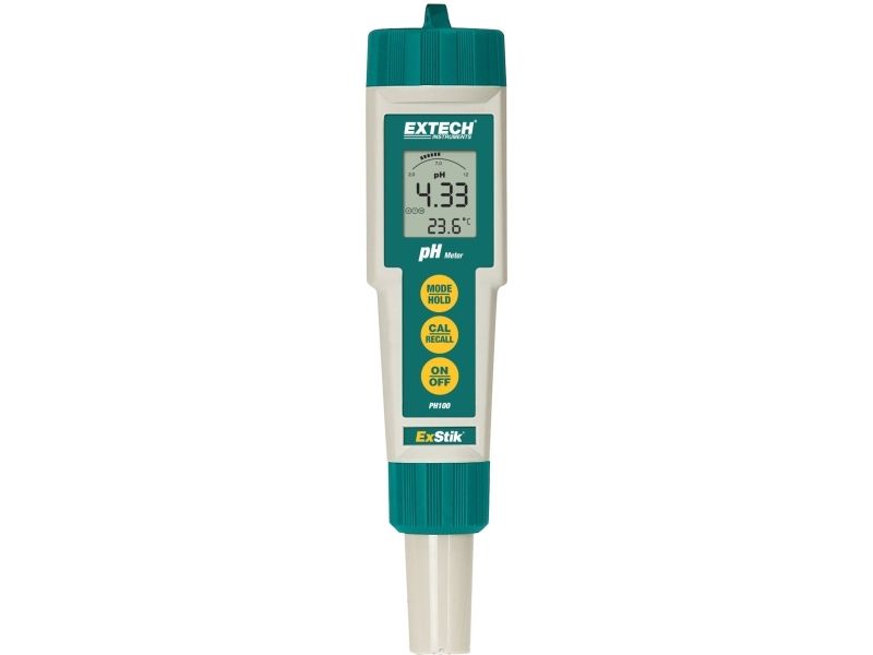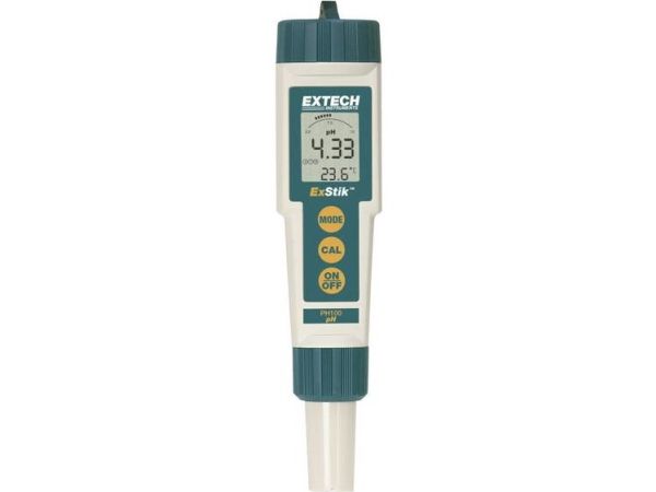 pH-målepind ExStik® PH100 Temperaturkompensation · Hukommelse til 15 måleværdier · Udskiftningsindikator for pH-elektrode · Søjlediagramdisplay. Robust og vandtæt (IP57) målepind til pH. På grund af den flade, udskiftelige måleelektrode er det også muligt at foretage målinger ved lav væskestand eller på overflader. Flad pH-elektrode for enkel rengøring Mulighed for en-, to- eller trepunktskalibrering Vandtæt (IP57)