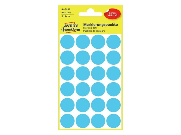 Avery Zweckform - Selvklebende - blå - 18 mm rund 96 etikett(er) (4 ark x 24 runde etiketter)