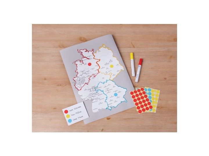 Farvekodingsdots er fremragende til mærkning på landkort afgangsstedet, destinationen og f.eks. potentielle steder at opholde sig om natten. Farvekodingsdots er også ideelle til at markere deadlines og datoer i projektplaner, bøger eller til intern ferieplanlægning på kontoret.