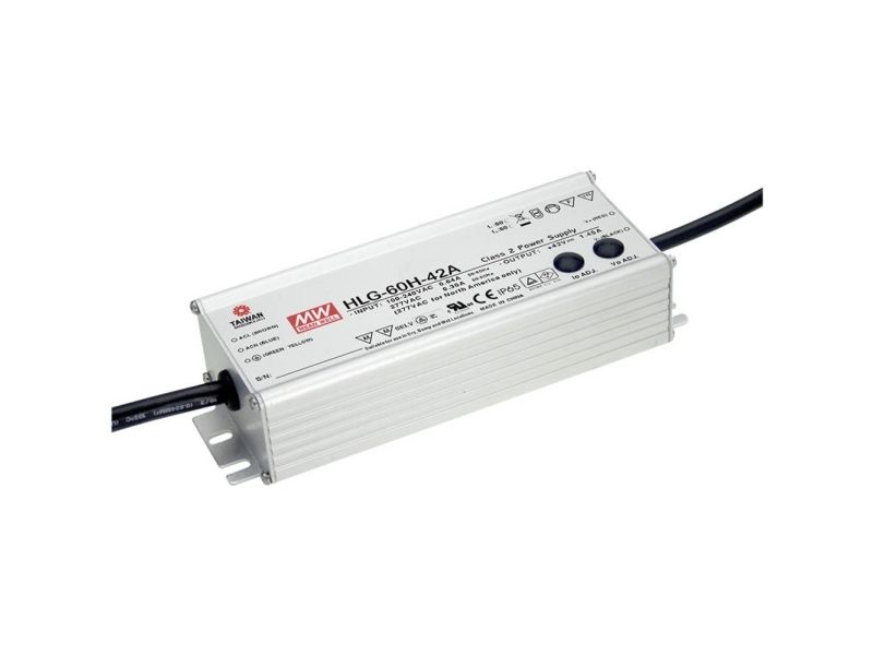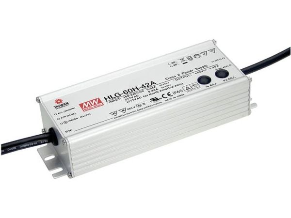 MEAN WELL HLG-60H-24A, 60 W, IP65, 90 - 305 V, 47 / 63 Hz, 0.3 - 0.64 A, 2,5 A