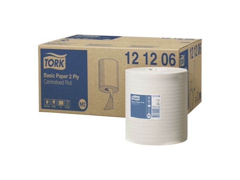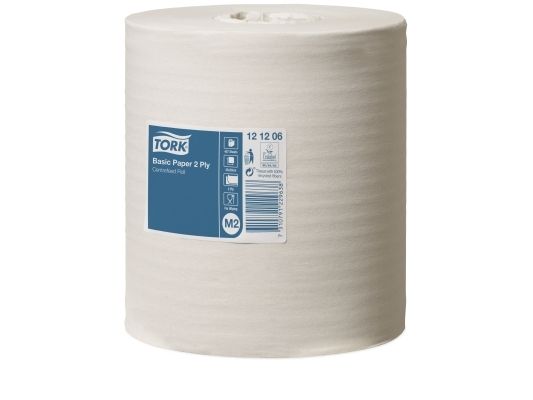 Aftørringspapir tork m2 basic centerfeed, karton a 6 ruller