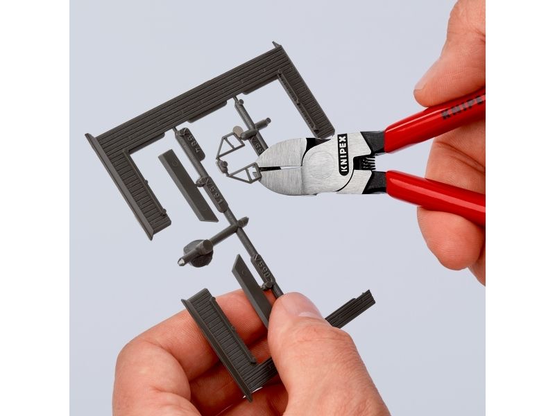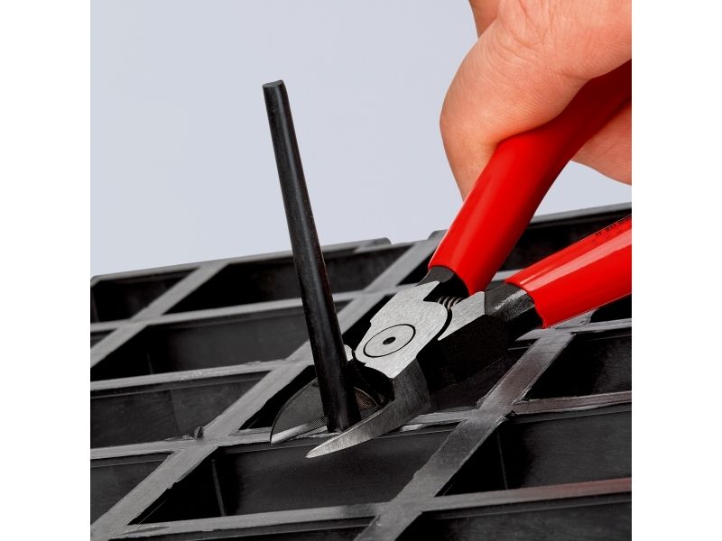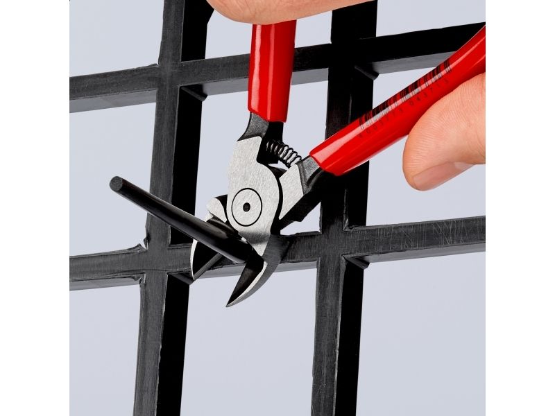 Med planslebne skærflader. Til plan afskæring af sprøjtestøbte plastdele og støberester. Klipper nemt materiale som bly, uden grater. Med åbningsfjeder.