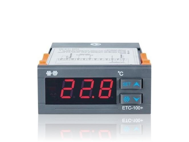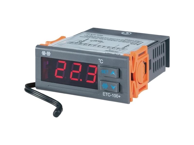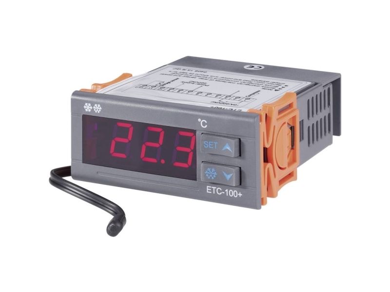 Temperaturregulatorerne ETC-100+ og ETC-200+ udmærker sig ved nem betjening og pålidelighed. Versionen ETC-100+ er særligt egnet til køleformål (relæet tilkobles, når en målt temperatur er højere end den øverste temperaturgrænse). ETC-200+ er både egnet til køle- og varmeformål og er udstyret med to relæudgange. I køletilstand står der på ETC-100+ og ETC-200+ en frit vælgelig tilkoblingsforsinkelse på mellem 0 til 30 til rådighed. Desuden afgives der en advarselstone, når sensorforbindelsen er fejlbehæftet, eller temperaturen ligger uden for det tilladte temperaturområde (-40 til +120°C). I køletilstand har ETC-200+ desuden en automatisk defrost-funktion.