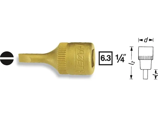 Square, hollow 6.3 mm (1/4 inch) · Slot profile · 0.8 x 4 mm