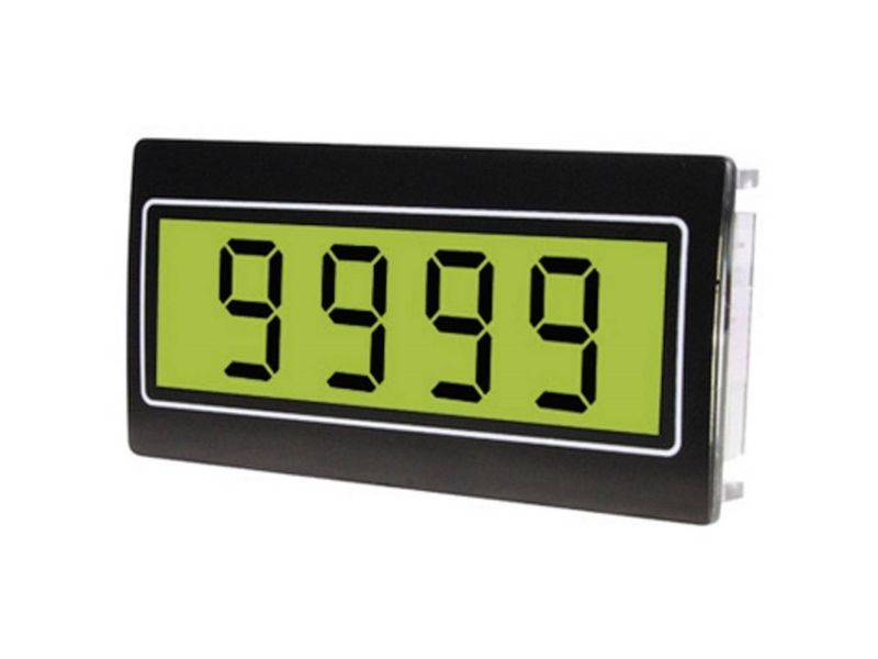 Undertrykkelse af førende nul · 4-cifret LCD-display · Forsyning, belysning: 5 V/DC · Grøn baggrundsbelysning.